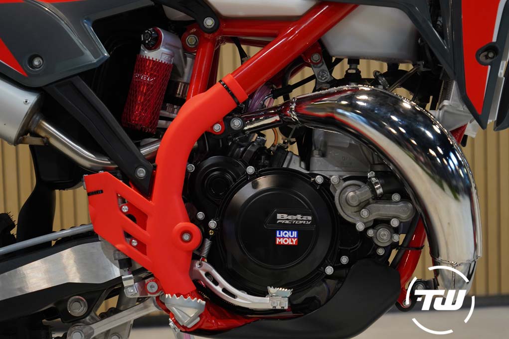 Motor XTRAINER 250 cc 2T renovado: el cigüeñal de carrera reducida 300 cc), nuevo diámetro, nueva culata y nuevo cilindro con barrido optimizado. Estas modificaciones generan un aumento de par y una entrega más lineal, sin comprometer el rendimiento máximo.