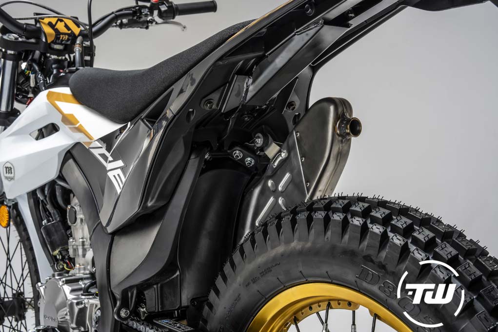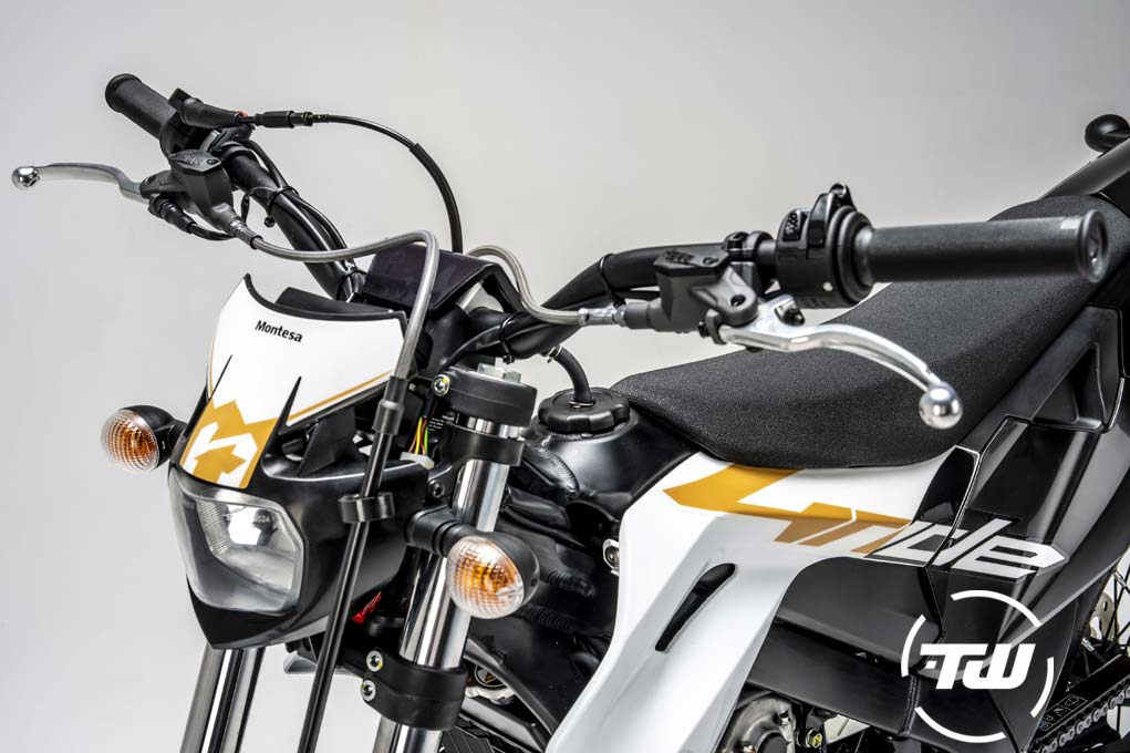 Como se puede ver a simple vista, la nueva 4Ride estrena una estética más elegante, con tonos negros y blancos en combinación con el dorado, recordándonos a la inspiración del modelo 50 aniversario de la Montesa Cota 300RR de 2018.