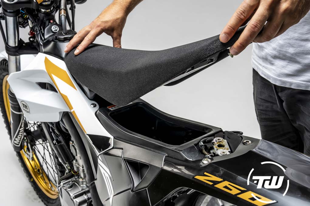 Sigue conservando el acceso a un pequeño compartimento bajo el asiento para poder llevar documentación, botella de combustible adicional o cualquier otro accesorio de equipamiento.