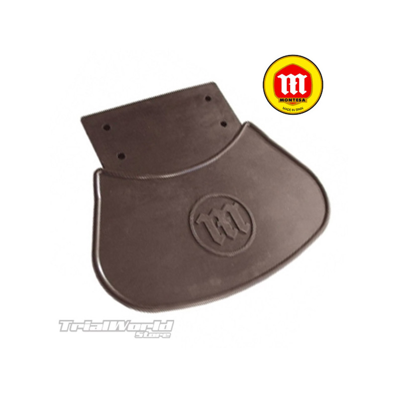 Gummikotflügel für Montesa Cota 348 und Montesa Cota 247 Vorderradkotflügel von trial. Montesa-Logo auf der Schürze eingraviert und an jedes andere Montesa-Modell anpassbar. Dieser Montesa-Gummikotflügel schützt das Vorderrad vor dem Schmutz, den das Vorderrad an den Motorblock abgibt. Die Referenz dieses Produkts ist 302019