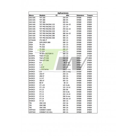 valid for the following models: * Gas Gas Gas Pro/Racing/Raga/Factory 2007 to 2022, * Jotagas 2012 to 2016 * Scorpa Twenty 2015 to 2022 * Sherco (all models) from 2002 to 2022 * TRS (all models) from 2016 to 2022 *A Vertigo (all models) from 2016 to 2022 *A Vertigo (all models) from 2016 to 2022 *A Montesa Cota 4RT (all models) from 2005 to 2022