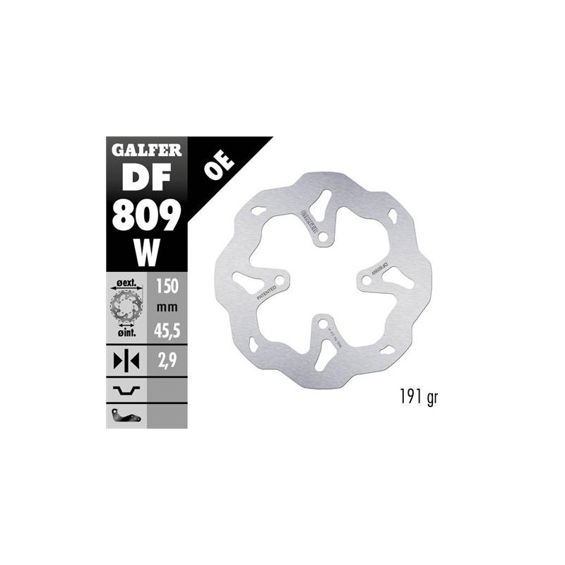 Front brake disc from trialwith FIM homologation. Better braking and more security, as it prevents any finger or object can enter inside the disc. Manufactured by Galfer, it has a homologated diameter of 150 mm. The reference of this product is 70314-809W