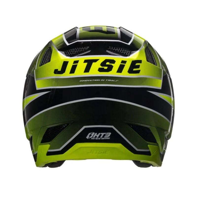 Helmet of trialJitsie HT3 FullRev in yellow color is the new fiberglass helmet manufactured by Jitsie with homologation 22-06. Made of aerospace fiberglass, the HT3 is one of the lightest and best ventilated helmets on the market, featuring four large air intakes under the visor and six air vents on the top and rear.