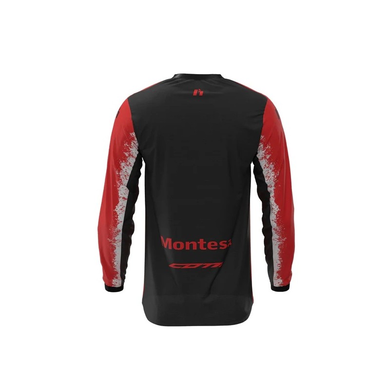 HEBO T-shirt Tech Montesa Classic red, suitable for both Trial and Enduro. New collection 2025. It is made of 80% recycled materials, built in recycled polyester quick-drying. Weight of only 180 grams. The inner fabric of sleeves and arms is microperforated for perfect ventilation. The finish is made with Essence (microfiber and multifilament yarns) for greater comfort. Sun protection UPF +50. The REFERENCE of this product is HE2190R