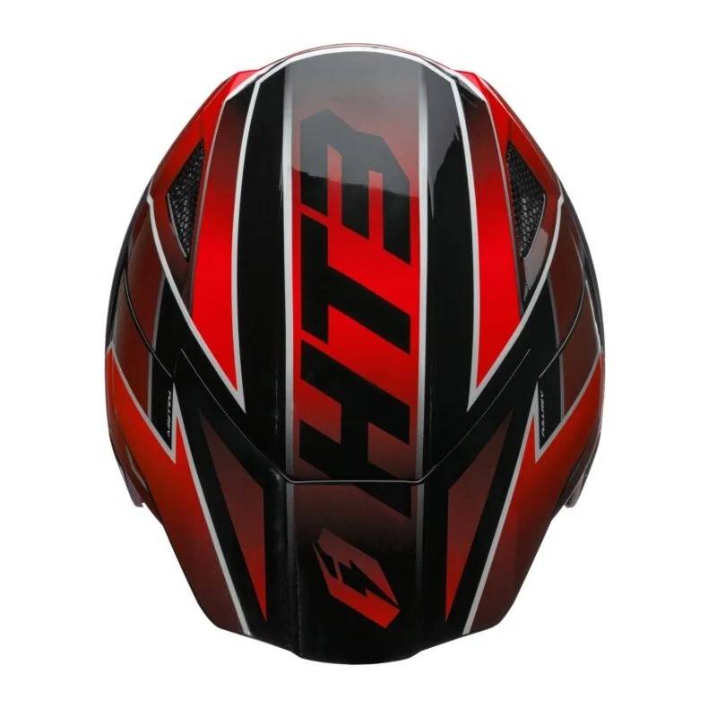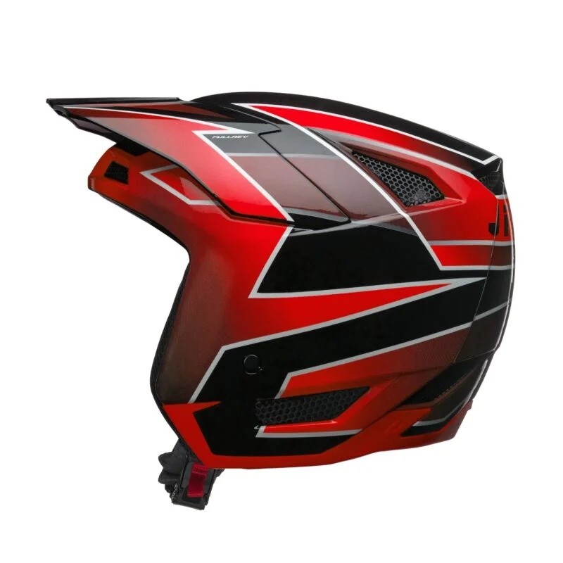 Casco de trial Jitsie HT3 FullRev en color rojo es el nuevo casco de fibra de vidrio fabricado por Jitsie con la homologación 22-06. Fabricado en fibra de vidrio aeroespacial, el HT3 es uno de los cascos más ligeros del mercado y mejor ventilados, al contar con cuatro grandes entradas de aire debajo de y la visera y seis salidas de aire en la parte superior y trasera.