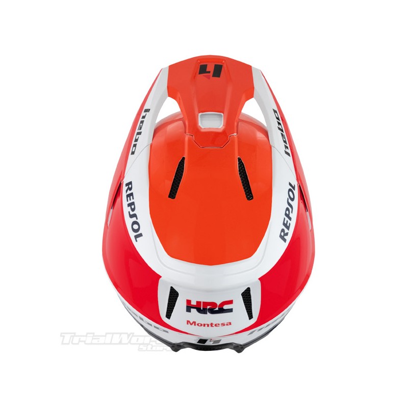 Casco de trial trial Hebo Zone PRO replica MONTESA REPSOL TEAM 2025 en talla S, oficial MONTESA, fabricado en fibra de vidrio de última generación. Homologación europea 22-06. Casco de trial con tres calotas para un ajuste perfecto en cada talla. Disponible en más colores y acabados.