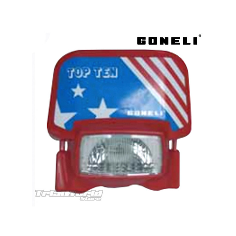 Faro delantero para Beta TR34 y Beta TR35 en color rojo fabricado por Goneli. El luz delantera para Beta TR34 y Beta TR34 incluye portalámparas y tornillos, pero no la bombilla.Recambio para resteurar una Beta TR34 y Beta TR35.La referencia de este producto es 08670 03