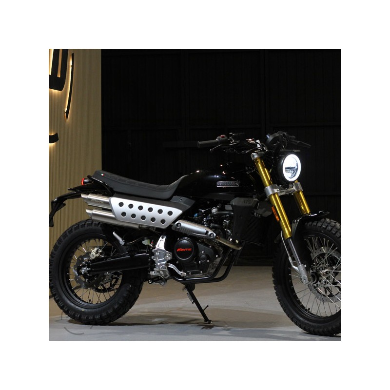 El modelo SCRAMBLER 125cc está disponible en color negro o rojo. También en versión de 125cc Rally, con suspensiones más largas y cubrecárter.