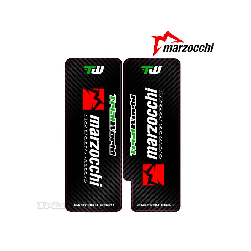 Autocollants de fourche MARZOCCHI pour motos à partir de trial. Ces autocollants, d'une épaisseur de 200 microns, sont universels et conviennent à toutes les motos à partir de trial. Facile à poser. La référence de ce produit est TWA4004