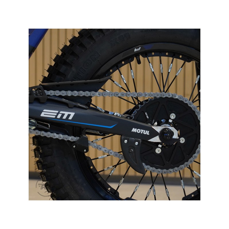 Sur le plan mécanique, tout est entièrement nouveau. A commencer par le bloc moteur, où l'on a cherché à augmenter la capacité d'inertie, le couple et le régime. Cela se traduit par des chiffres tels que la capacité de délivrer un couple de 1 400 Nm en première vitesse (presque le double de celui d'un 2 temps) et de monter jusqu'à 17 000 tr/min. Plus concrètement, la puissance de l'ESCAPE R Electric Motion peut atteindre 25 ch, soit cinq ou six ch de plus qu'une moto thermique équivalente