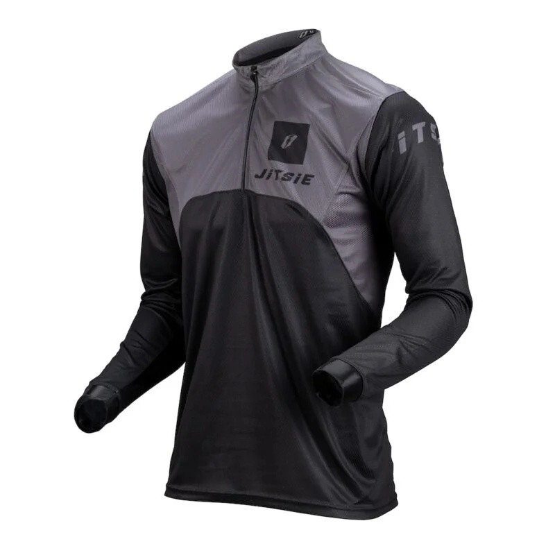 Nuova T-shirt trialJitsie 01 OMNIA SOLID nera con apertura a zip. Realizzata in poliestere, offre grande funzionalità e consente una facile regolazione della ventilazione.