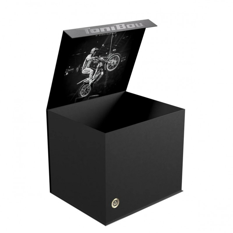 Questo casco in fibra di carbonio Toni Bou edition include una borsa specifica e una scatola firmata dallo stesso Campione del Mondo.